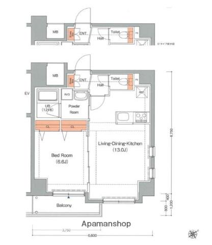 | 間取り詳細 | LDK(13帖)、洋室(6.6帖) | ||