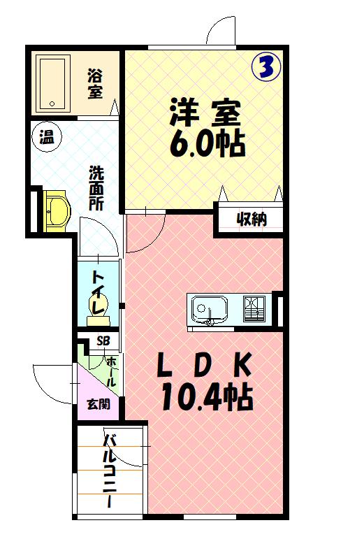 | 間取り詳細 | LDK(10.4帖)、洋室(6帖) | ||