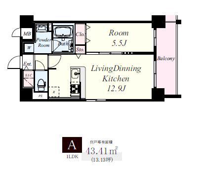 | 間取り | 1LDK | 専有面積 | 43.41m2 |