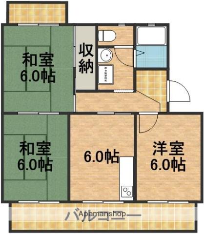| 間取り詳細 | 和室(6帖)、和室(6帖)、洋室(6帖)、DK(6帖) | ||