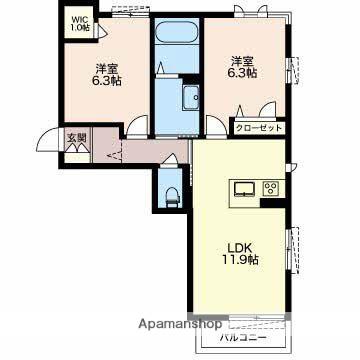 | 間取り詳細 | LDK(11.9帖)、洋室(6.3帖)、洋室(6.3帖) | ||