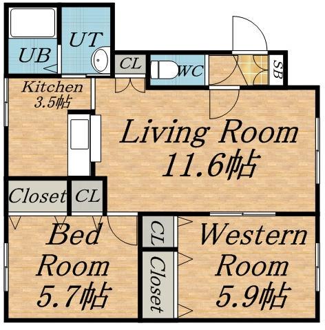 | 間取り詳細 | LD(11.6帖)、K(3.5帖)、洋室(5.9帖)、洋室(5.7帖) | ||