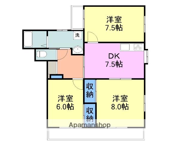 | 間取り詳細 | 洋室(8帖)、洋室(7.5帖)、和室(6帖)、DK(7.5帖) | ||