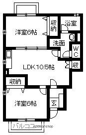 | 間取り詳細 | LDK(10.5帖)、洋室(6帖)、洋室(6帖) | ||