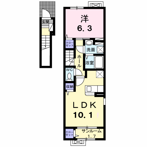 アパート カーサ ソレイユ(1LDK/3階) | |||||||