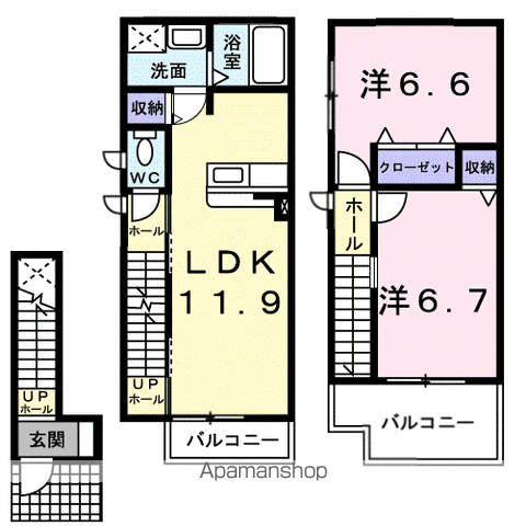 | 間取り詳細 | 洋室(6.7帖)、洋室(6.6帖)、LDK(11.9帖) | ||