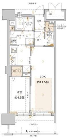 | 所在階 / 向き | 4階 / 南西 | バルコニー面積 | 25m2 |