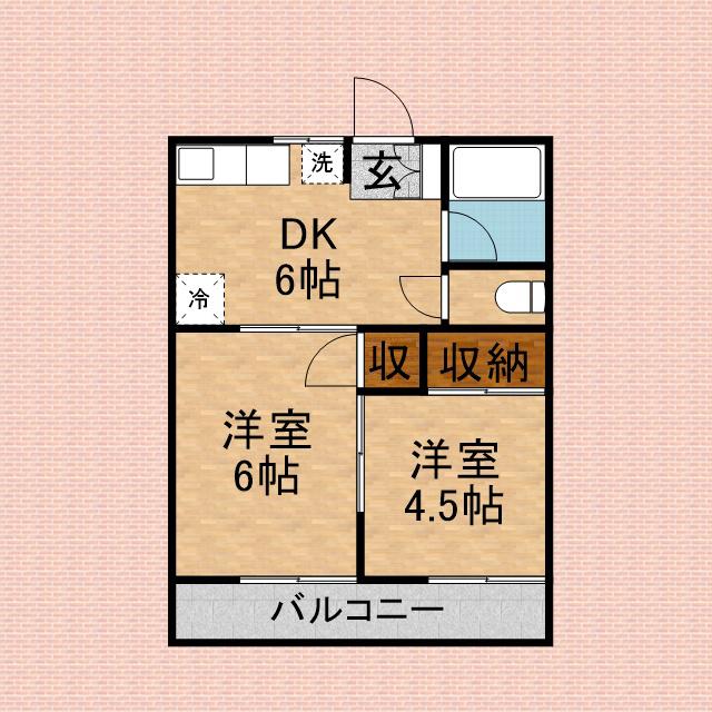 | 間取り詳細 | 洋室(6帖)、洋室(4.5帖)、DK(6帖) | ||