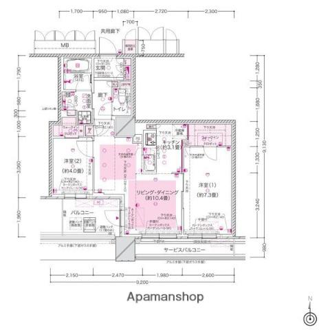 | 間取り | 2LDK | 専有面積 | 59.32m2 |