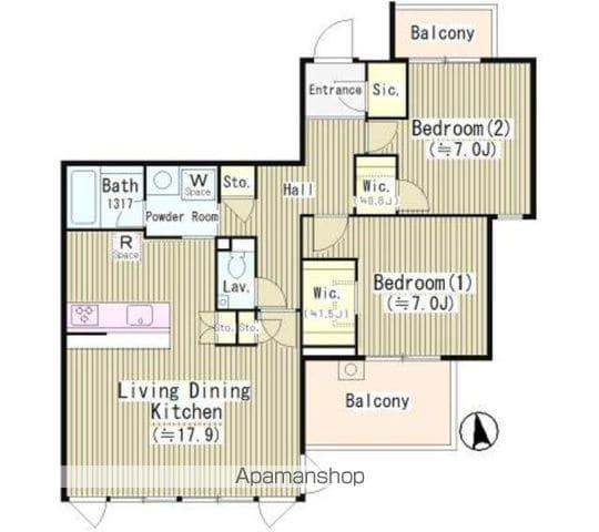 | 間取り詳細 | 洋室(7帖)、洋室(7帖)、LDK(17.9帖) | ||
