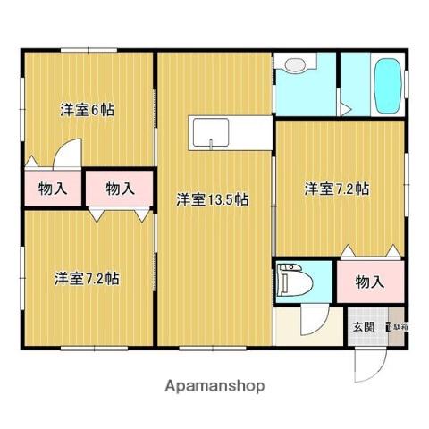 | 間取り詳細 | 洋室(7.2帖)、洋室(7.2帖)、洋室(6帖)、LDK(13.5帖) | ||