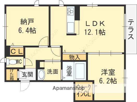 | 間取り詳細 | LDK(12.1帖)、洋室(6.2帖)、S(6.4帖) | ||