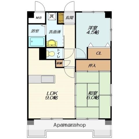 | 間取り詳細 | LDK(9帖)、和室(6帖)、洋室(4.5帖) | ||