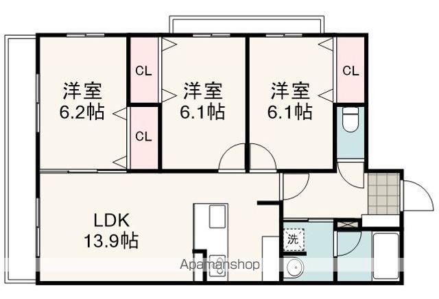 | 間取り詳細 | LDK(13帖)、洋室(7.5帖)、洋室(7.1帖) | ||