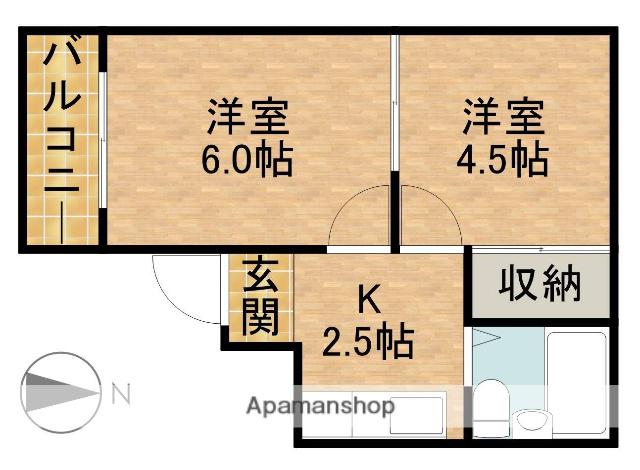 | 間取り詳細 | 洋室(6帖)、洋室(4.5帖)、K(2.5帖) | ||