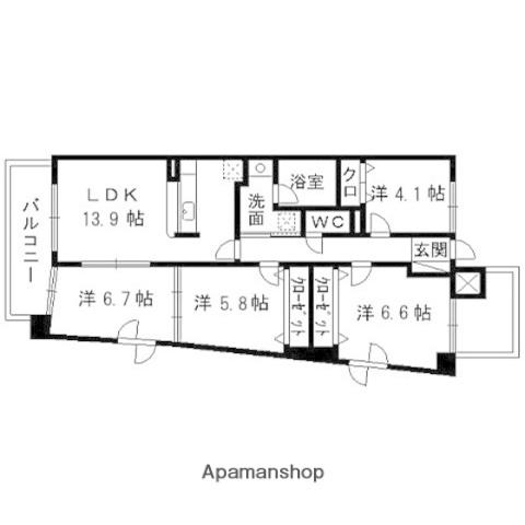 | 間取り詳細 | 洋室(6.7帖)、洋室(5.8帖)、洋室(6.6帖)、洋室(4.1帖)、LDK(13.9帖) | ||