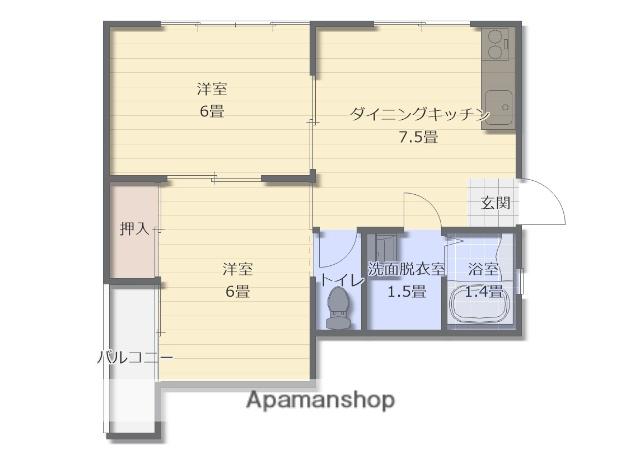 | 間取り詳細 | DK(7.5帖)、洋室(6帖)、洋室(6帖) | ||