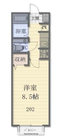 | 設備 | バス・トイレ別、テレビドアホン、システムキッチン、バルコニー、フローリング、コンロ:ガス、インターネット使用料無料、シャワー、給湯、冷房、洗濯機:室内 | ||