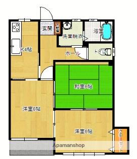 | 間取り詳細 | 和室(6帖)、洋室(6帖)、洋室(6帖)、K(4帖) | ||