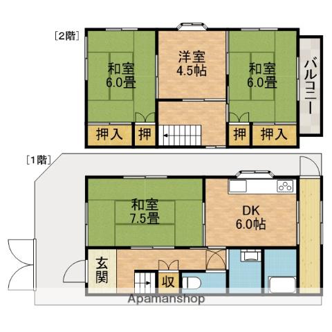 | 間取り詳細 | DK(6帖)、和室(7.5帖)、和室(6帖)、和室(6帖)、洋室(4.5帖) | ||