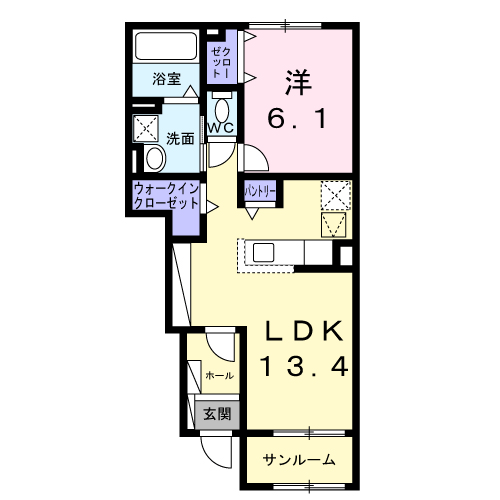 | 間取り詳細 | LDK(13.4帖)、洋室(6.1帖) | ||