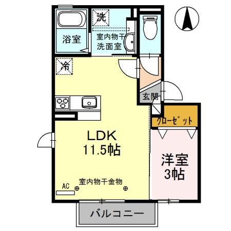 | 間取り詳細 | LDK(11.5帖)、洋室(3帖) | ||