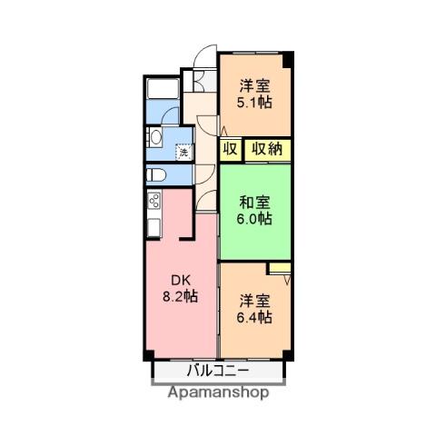 | 間取り詳細 | DK(8.2帖)、洋室(6.4帖)、和室(6帖)、洋室(5.1帖) | ||