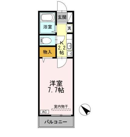 | 間取り詳細 | K(2.2帖)、洋室(7.7帖) | ||