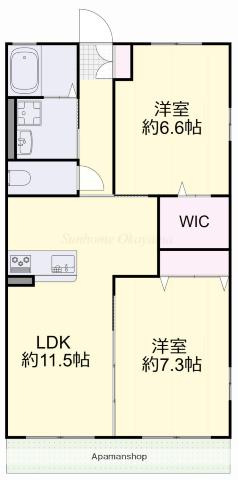 | 間取り詳細 | LDK(11.5帖)、洋室(7.3帖)、洋室(6.6帖) | ||