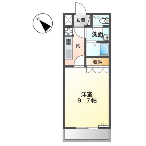 | 間取り詳細 | K(2帖)、洋室(9.7帖) | ||