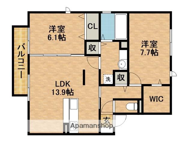 | 間取り詳細 | 洋室(7.7帖)、洋室(6.1帖)、LDK(13.9帖) | ||