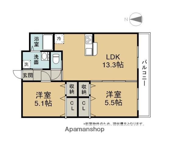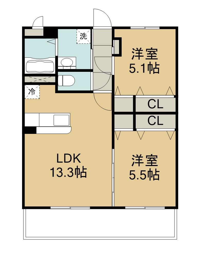 | 間取り詳細 | LDK(13.3帖)、洋室(5.5帖)、洋室(5.1帖) | ||