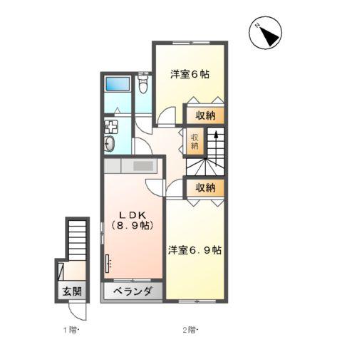 アパート エミネンスヴィラⅠ(2LDK/2階) | |||||||
