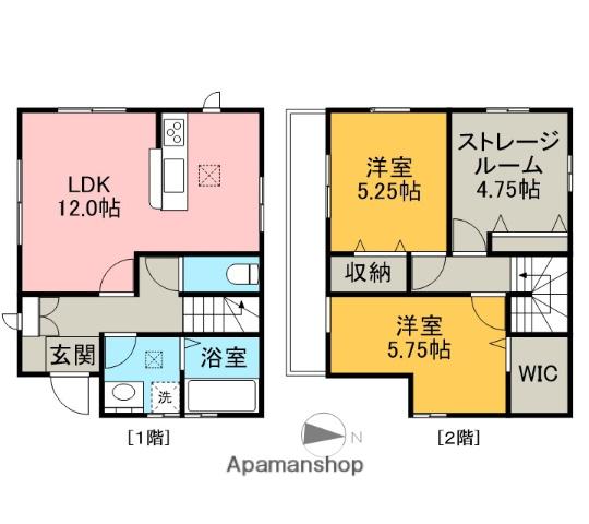 | 間取り詳細 | LDK(12帖)、洋室(5.7帖)、洋室(5.2帖)、S(4.7帖) | ||