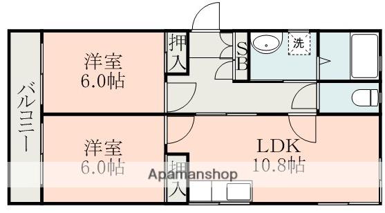 | 間取り詳細 | LDK(10.8帖)、洋室(6帖)、洋室(6帖) | ||