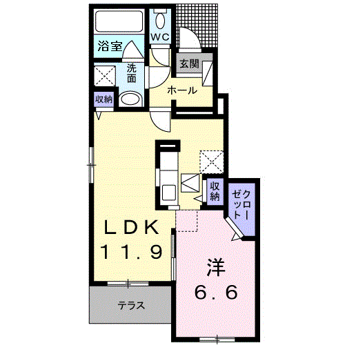 | 間取り詳細 | 洋室(6.6帖)、LDK(11.9帖) | ||