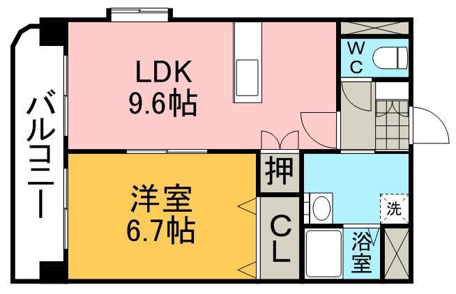 | 間取り詳細 | LDK(9.6帖)、洋室(6.7帖) | ||