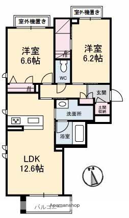 | 間取り詳細 | LDK(12.6帖)、洋室(6.6帖)、洋室(6.2帖) | ||