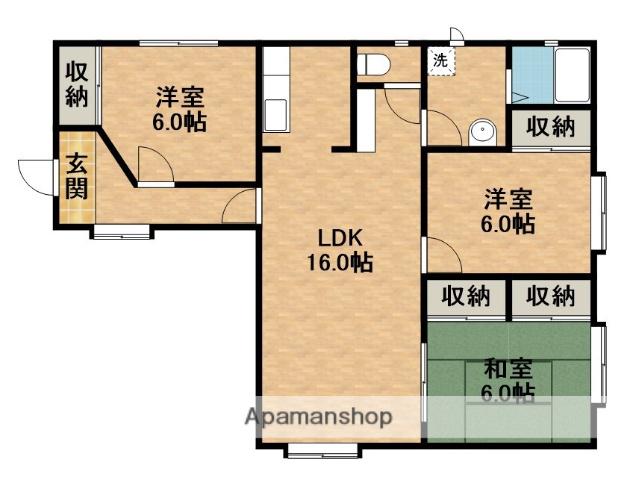 | 間取り詳細 | LDK(16帖)、和室(6帖)、洋室(6帖)、洋室(6帖) | ||