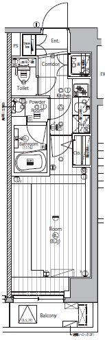 | 間取り | 1K | 専有面積 | 25.82m2 |