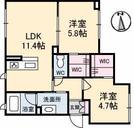 | 間取り詳細 | LDK(11.4帖)、洋室(5.8帖)、洋室(4.7帖) | ||
