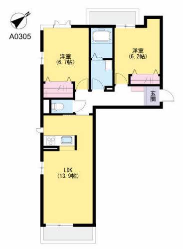 | 間取り詳細 | LDK(13.9帖)、洋室(6.7帖)、洋室(6.2帖) | ||