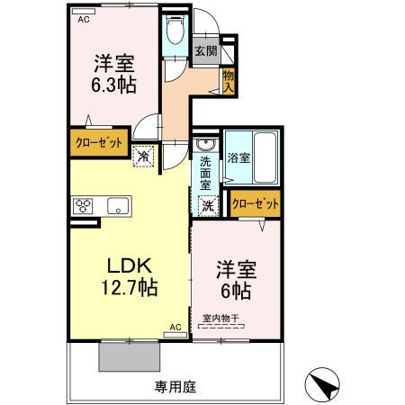 | 間取り詳細 | LDK(12.7帖)、洋室(6帖)、洋室(6.3帖) | ||