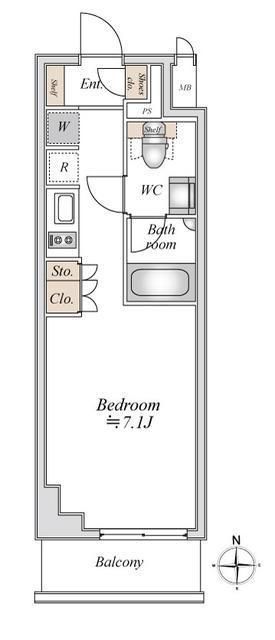 | 間取り | ワンルーム | 専有面積 | 19.14m2 |