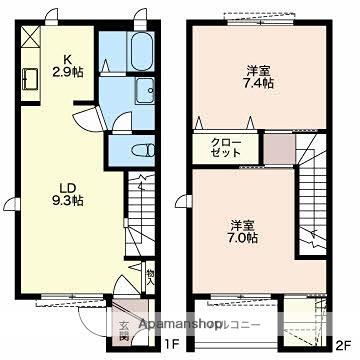 | 間取り詳細 | LD(9.3帖)、K(2.9帖)、洋室(7.4帖)、洋室(7帖) | ||