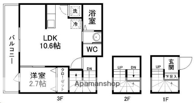 | 間取り詳細 | 洋室(2.7帖)、LDK(10.6帖) | ||