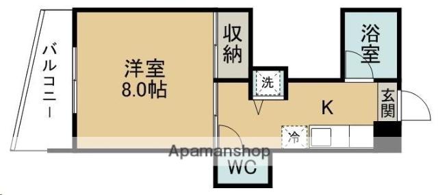 | 間取り詳細 | 洋室(8帖)、K(3帖) | ||