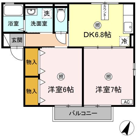| 間取り詳細 | DK(6.8帖)、洋室(6帖)、洋室(7帖) | ||