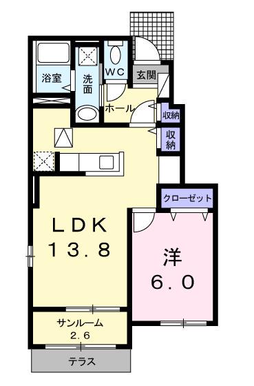 | 間取り詳細 | 洋室(6帖)、LDK(13.8帖) | ||