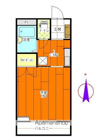 | 間取り詳細 | K(2.5帖)、洋室(8帖) | ||